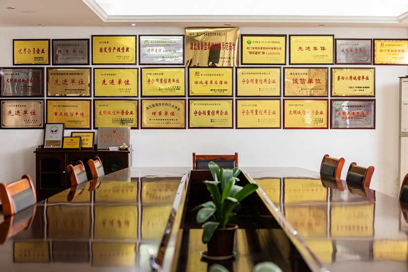 “明邦”商標(biāo)被認(rèn)定為“湖北省著名商標(biāo)”,同時(shí)被評(píng)定為“湖北名牌”產(chǎn)品,企業(yè)同時(shí)被評(píng)定為“湖北省重合同守信用企業(yè)”、“湖北省新型墻材產(chǎn)業(yè)化示范基地”和“荊門市循環(huán)經(jīng)濟(jì)示范企業(yè)”,公司通過了“綠色建材評(píng)價(jià)標(biāo)識(shí)證書”、“GB/T 45001-2020職業(yè)健康安全管理體系認(rèn)證證書”、“GB/T 19001-2016質(zhì)量管理體系認(rèn)證”、“GB/T 24001-2016環(huán)境管理體系認(rèn)證證書”。
